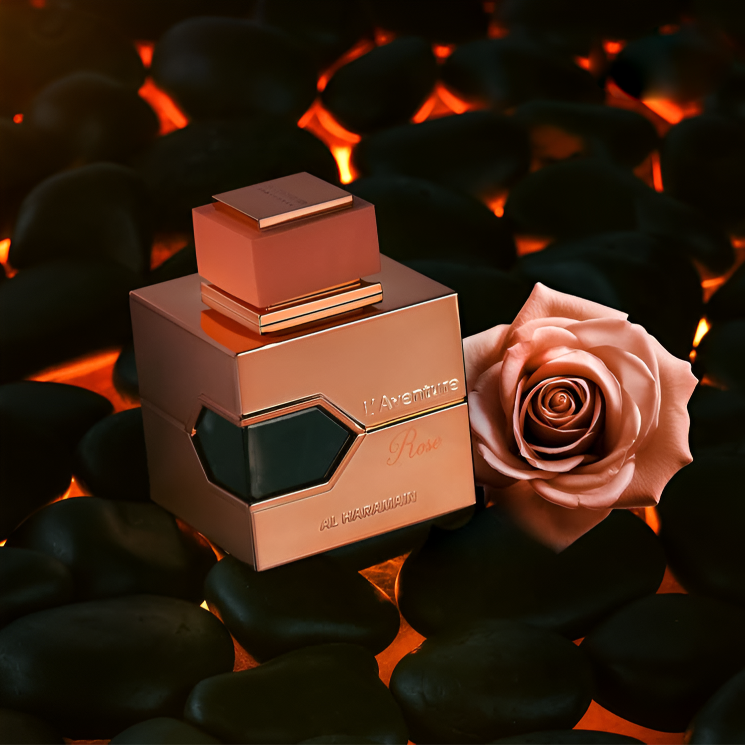 Al Haramain L'Aventure Rose EDP smells like a delightful blend of fresh citrus and elegant flowers, with a warm, woody finish that leaves a lasting impression of romance and sophistication.