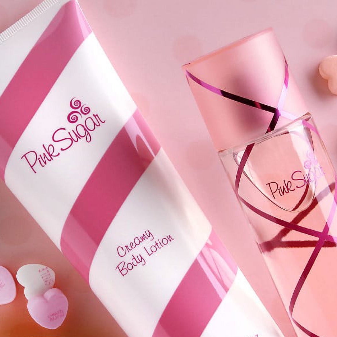 Aquolina Pink Sugar Glossy Shower Gel smells like a delightful mix of cotton candy, caramel, and vanilla for a sweet, indulgent shower experience.