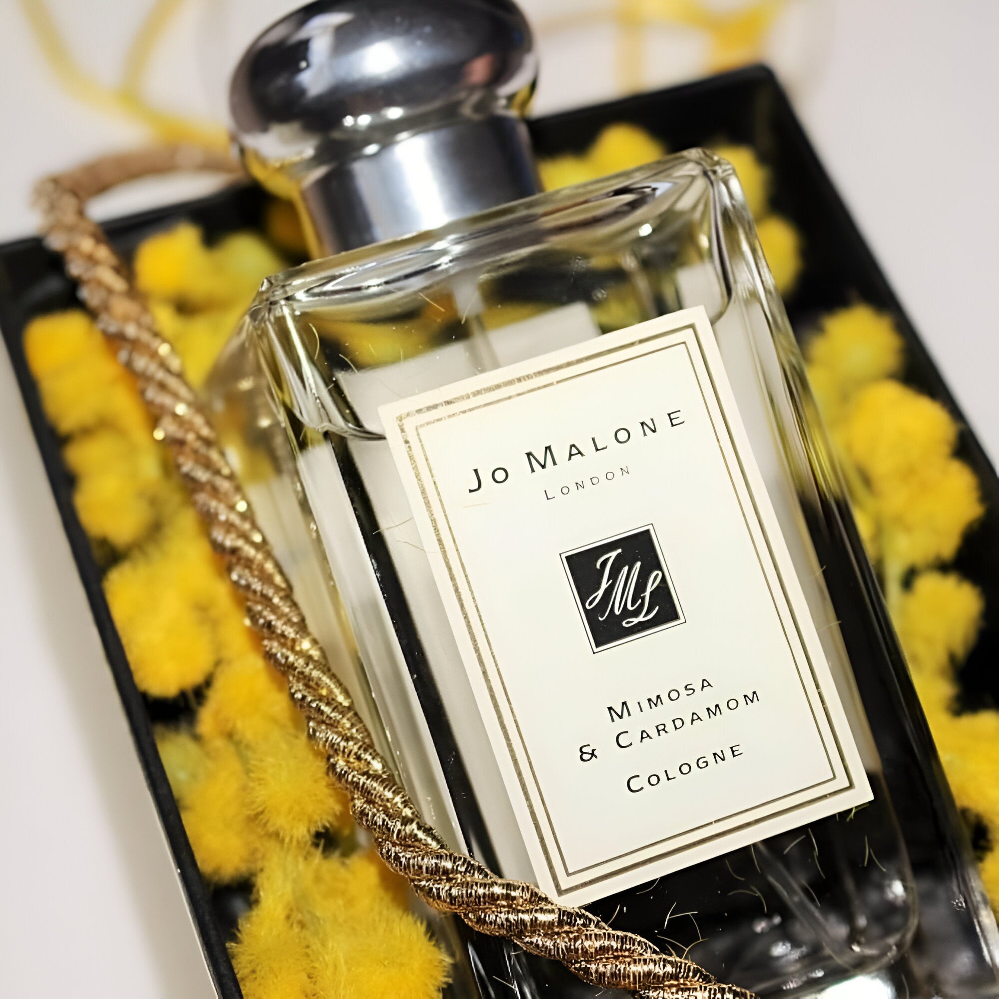 Jo Malone Mimosa & Cardamom Cologne smells like a warm, spicy blend of honeyed mimosa and freshly crushed cardamom, enriched with velvety tonka bean, smooth sandalwood, and a hint of powdery floral heliotrope.