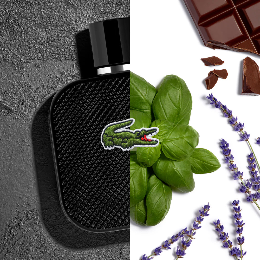 Lacoste L.12.12 Noir EDT smells invigorating and sophisticated, with fresh notes of watermelon, calming lavender, and rich patchouli, making it perfect for the modern man who wants to feel confident all day and night.