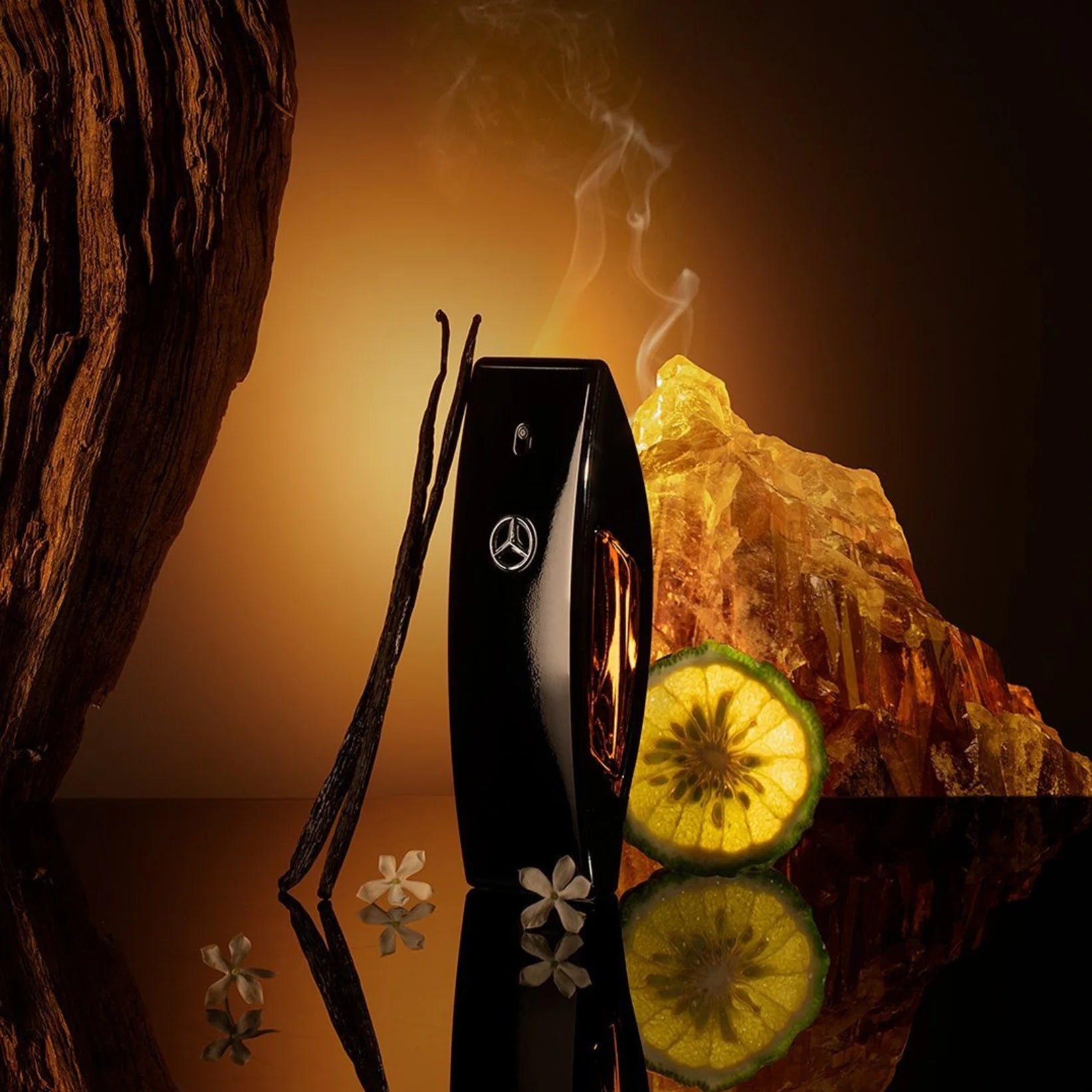 Mercedes Benz Club Black EDP for Men smells like a warm, spicy-woody blend with cardamom and lavender over leather, amber, and sweet vanilla/tonka undertones.