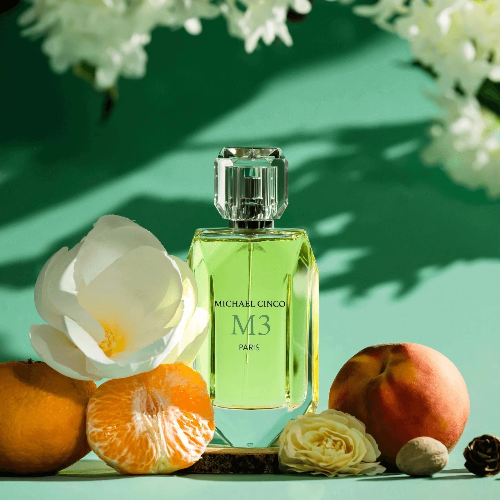 Michael Cinco M3 EDP smells like a captivating blend of fresh bergamot, mandarin, and peony, with a heart of romantic rose and jasmine, all grounded by a warm base of white musk and amber, embodying curiosity and sophistication.