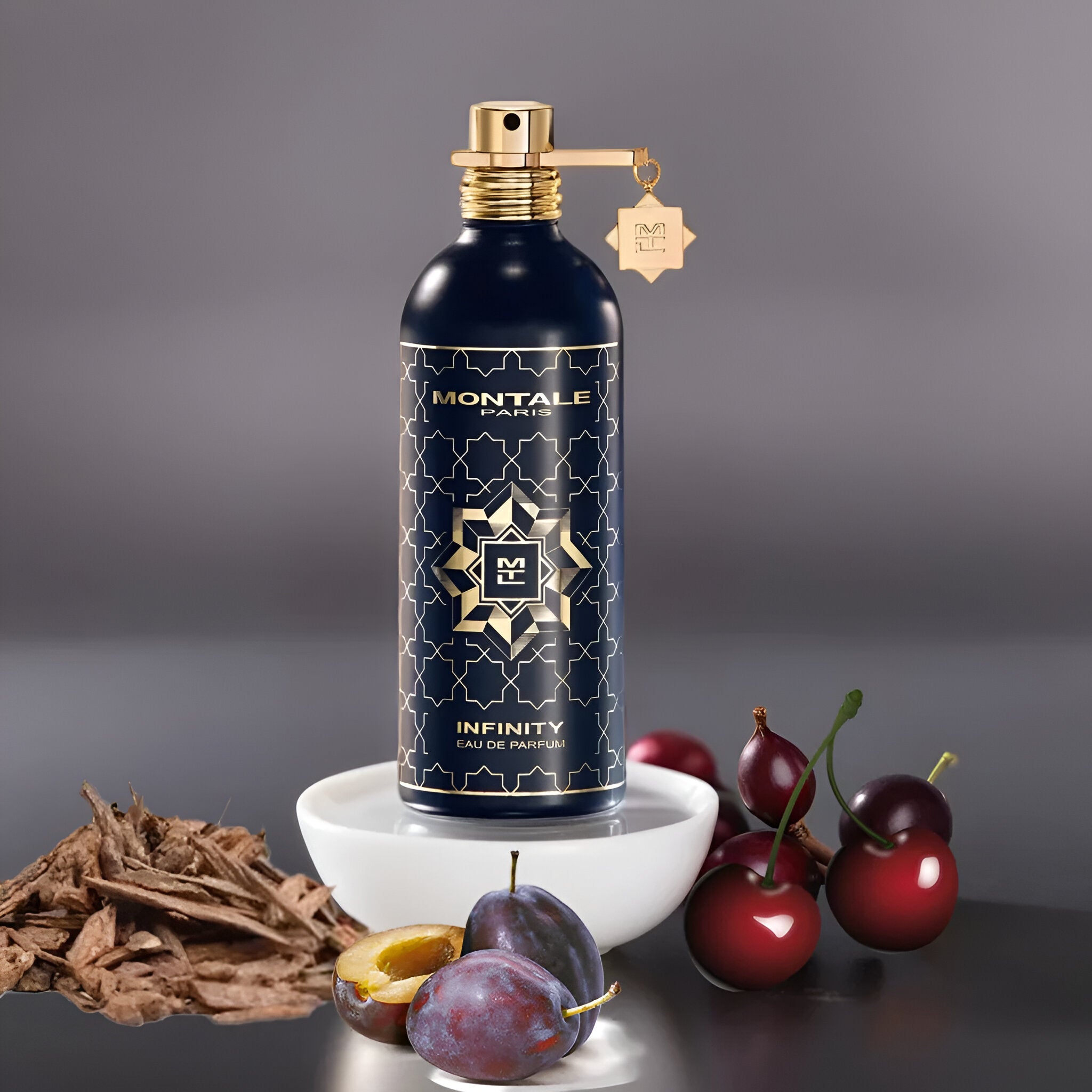 Montale Infinity EDP smells like a captivating blend of juicy plum and black cherry wrapped in a rich, spicy, and woody embrace with luxurious leather undertones.