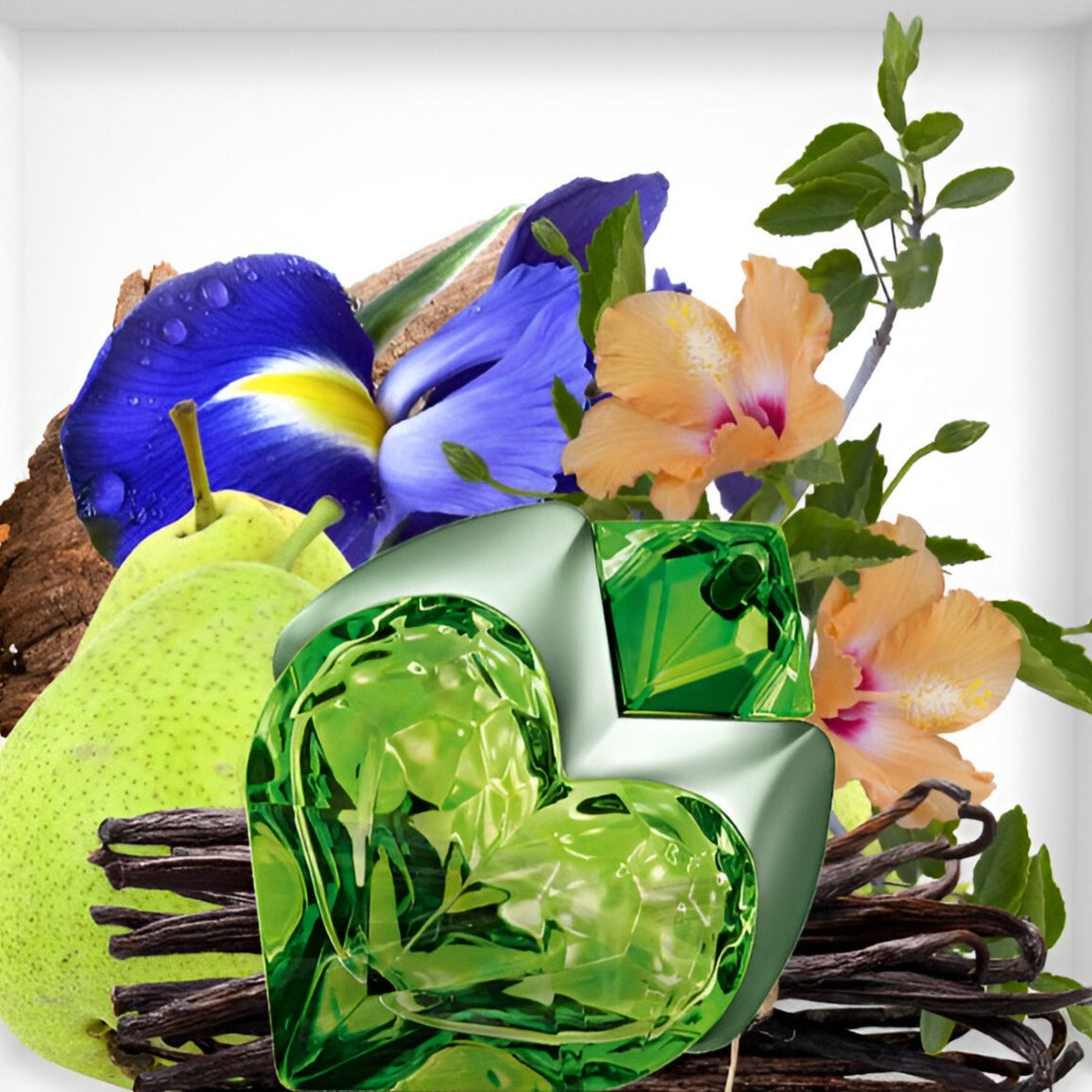 - Housed in a green heart-shaped bottle.