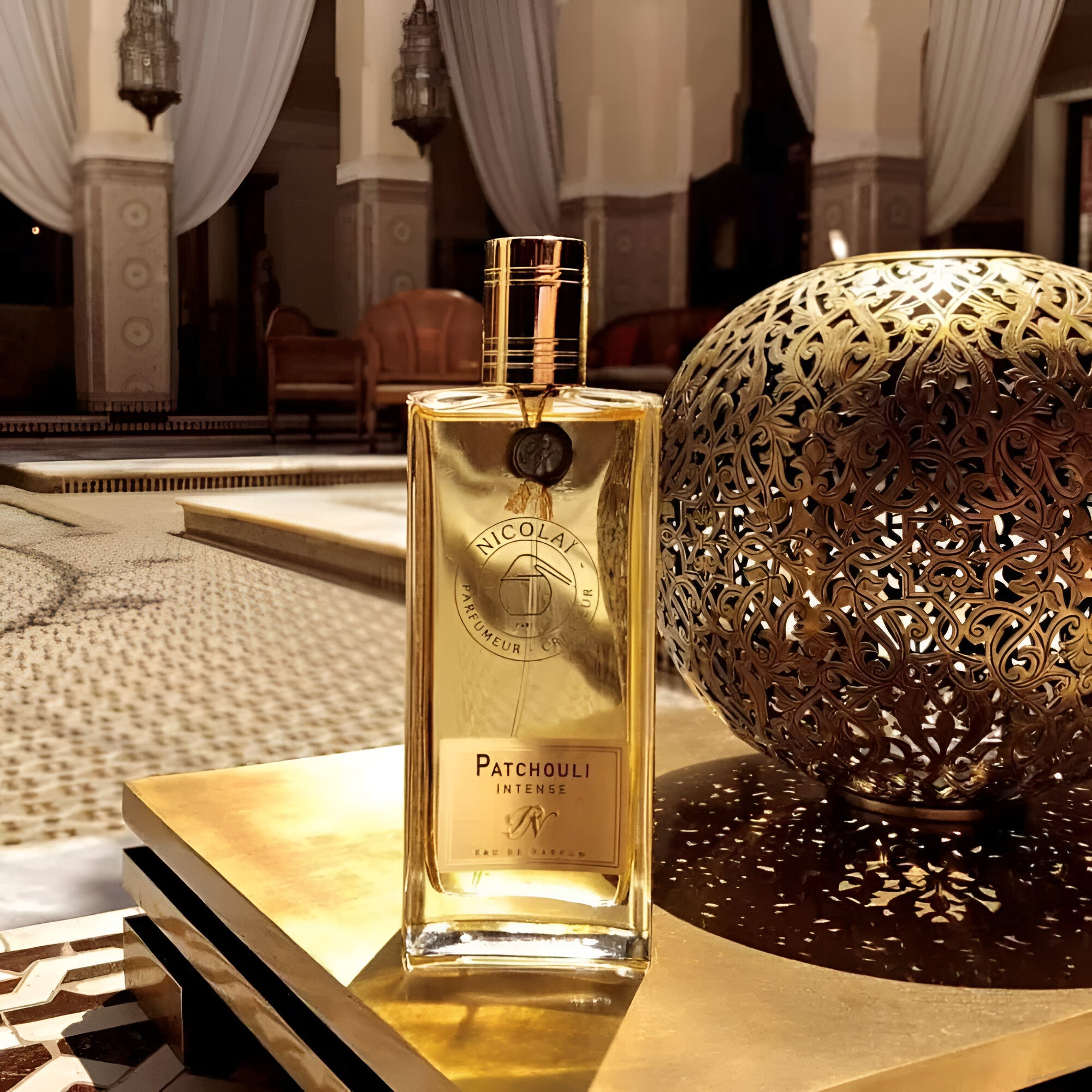 - Oriental background enhances the patchouli essence.