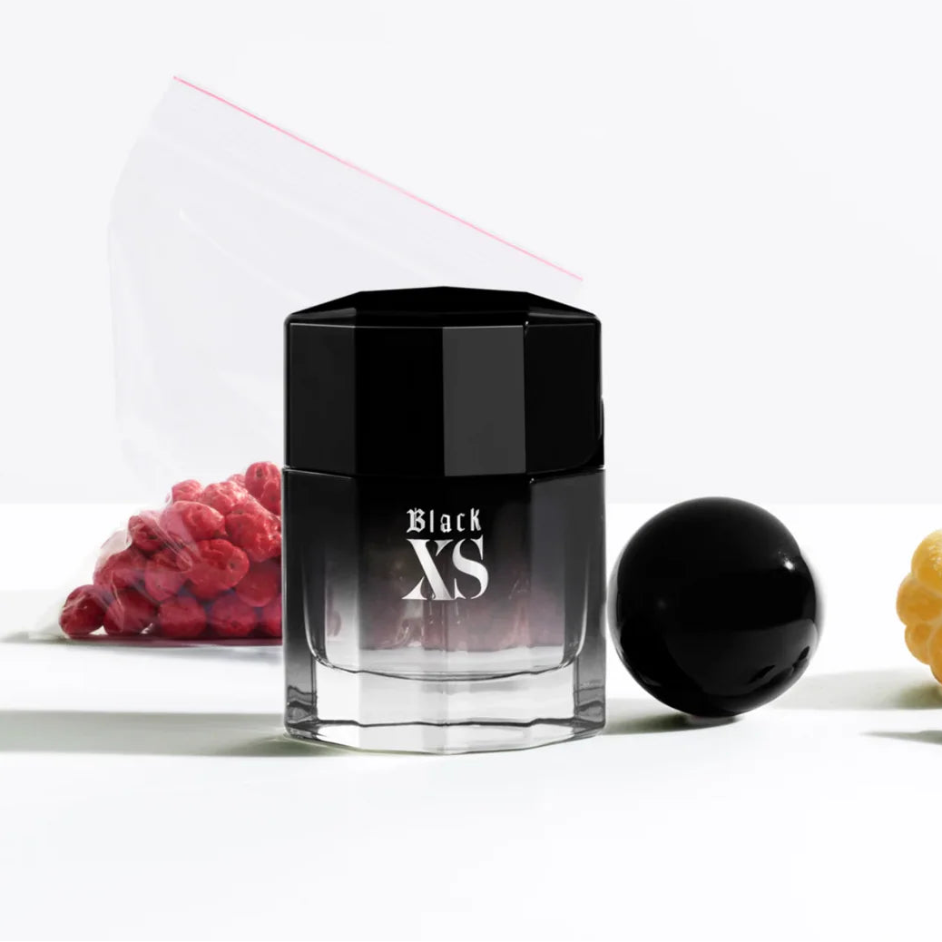 Paco Rabanne Black XS 2018 smells like a bold, rock‑style woody-oriental mix of zesty lemon and tart kalamansi over warm spices (cinnamon, black cardamom), aromatic sage and tagete, and a sweet praline heart wrapped in earthy patchouli, rosewood and dark amber.