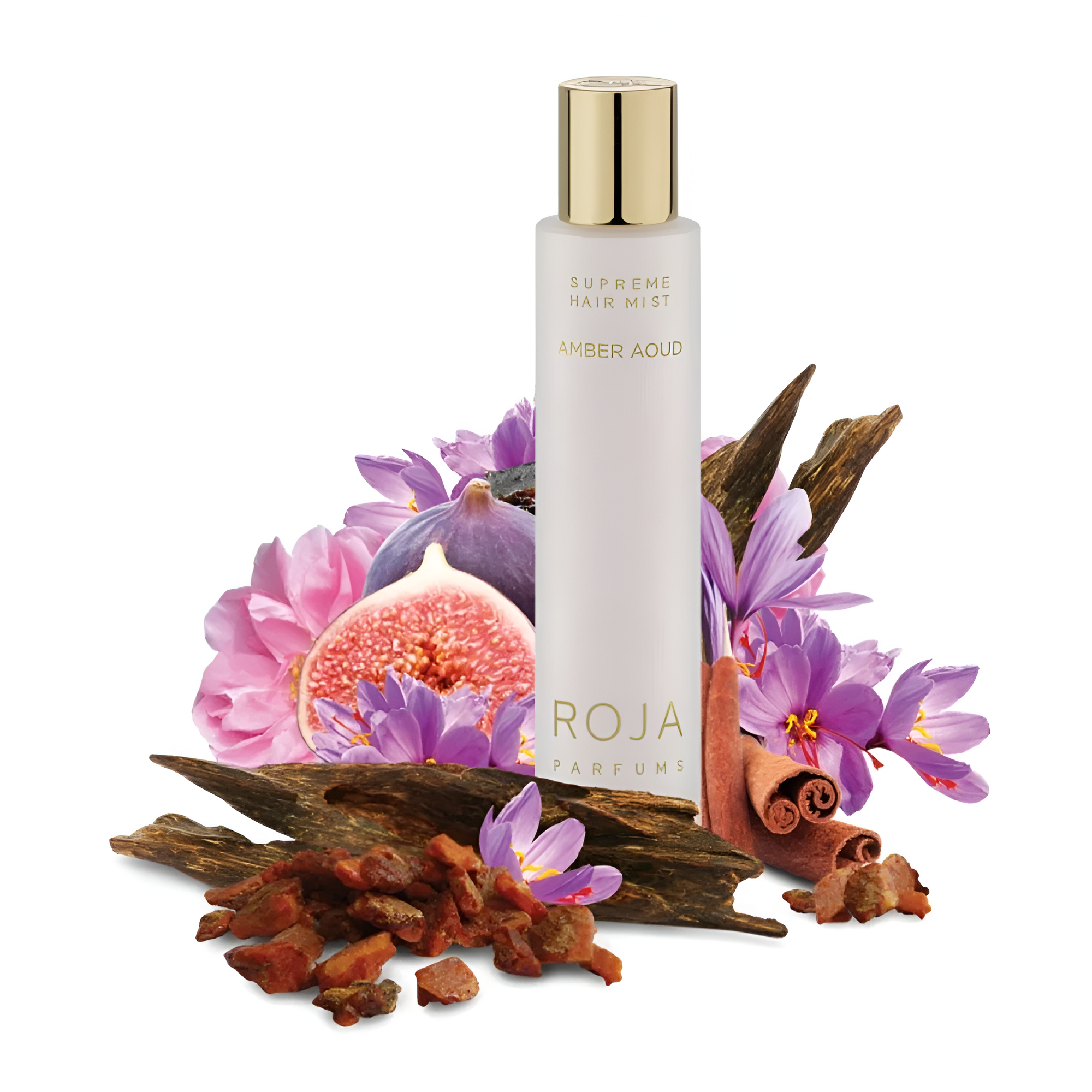 Roja Parfums Amber Oud Supreme Hair Mist smells like a mix of fresh citrus, sweet flowers, and warm, spicy woods – a luxurious scent for anyone's hair.