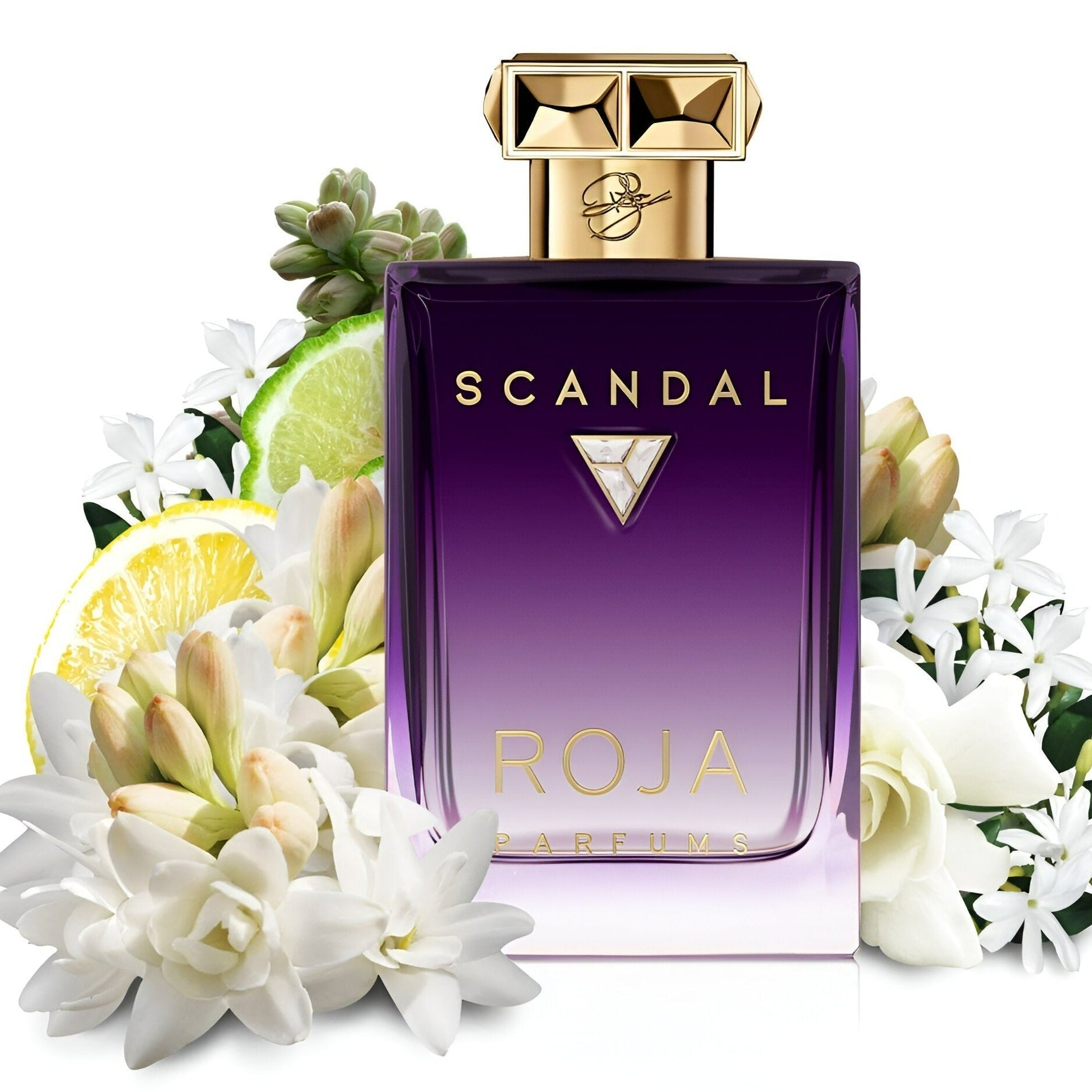Roja Parfums Scandal Pour Femme Essence De Parfum smells like a luxurious and captivating blend of Jasmine and Rose, evoking romance, mystery, and timeless elegance.