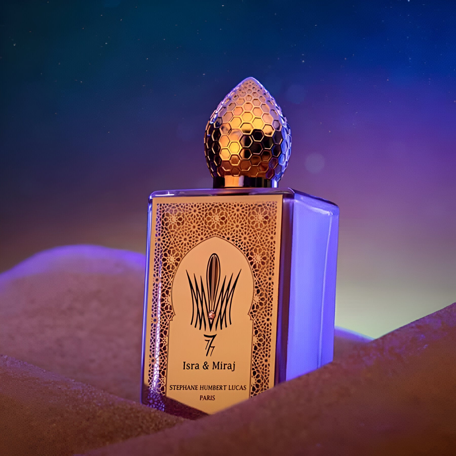 Stephane Humbert Lucas Paris revisits its roots, embracing the mystical journey of Isra & Miraj to craft this exquisite fragrance. Designed for both men and women, it is a homage to the profound spirituality and rich traditions that have shaped the 777 collection.