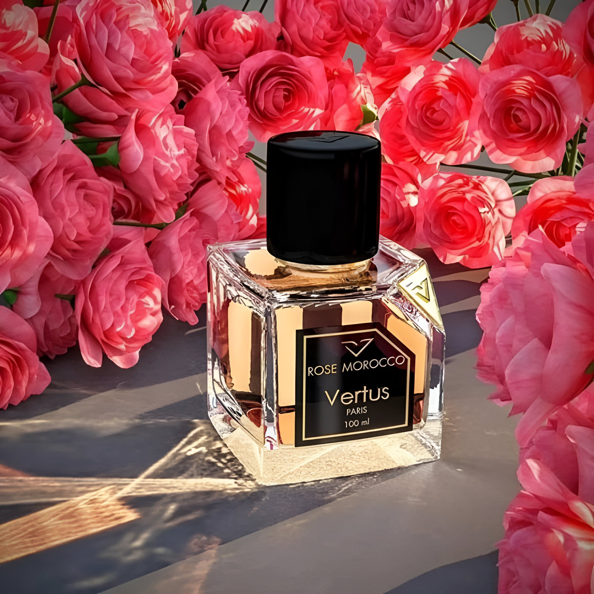 Indulge in the luxurious essence of Vertus Rose Morocco EDP, a unisex fragrance that captivates and enchants.